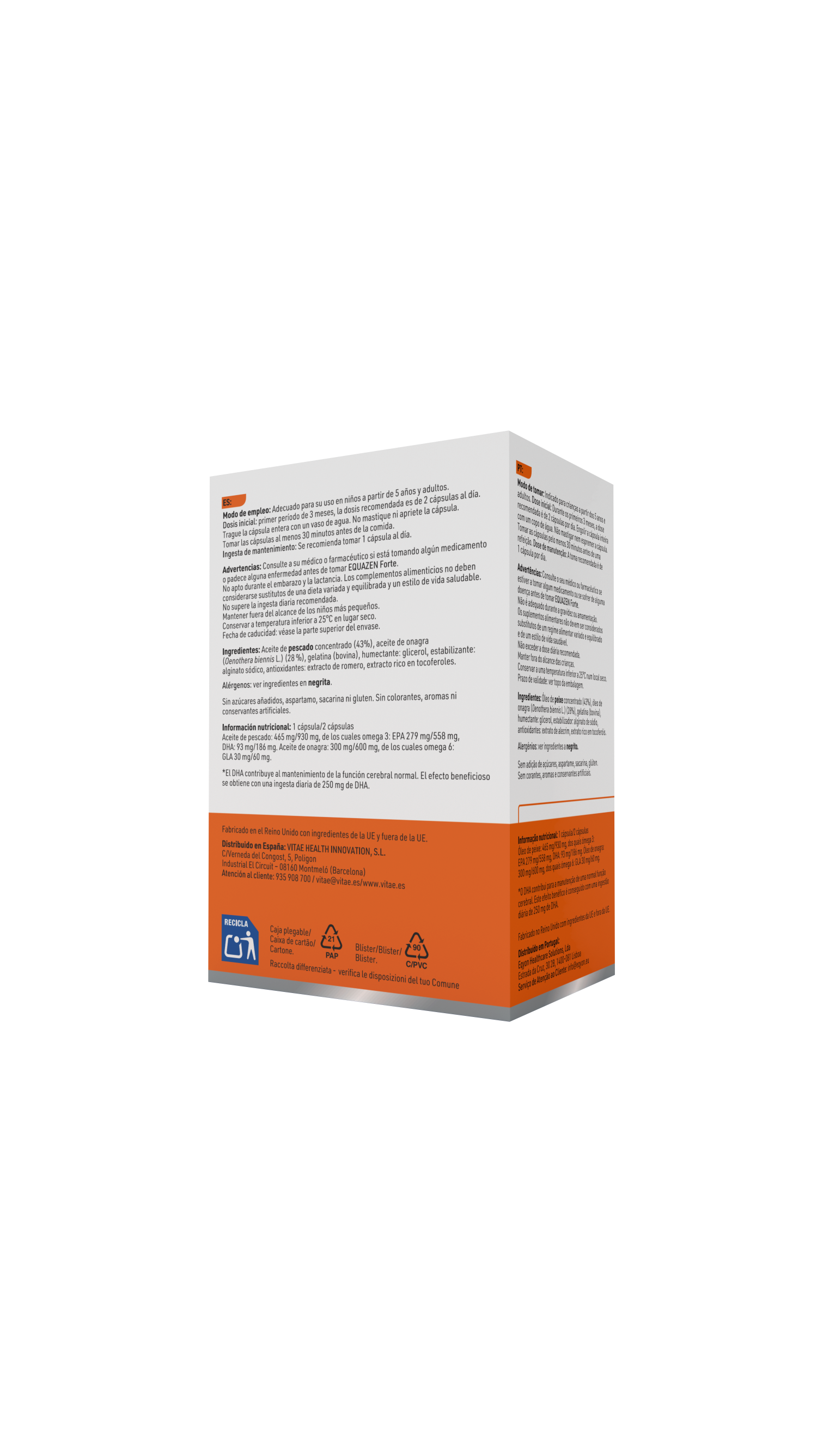 EQUAZEN® Forte é um suplemento alimentar que contém uma combinação precisa de ácidos gordos polinsaturados ómega-3 EPA (ácido eicosapentaenóico) e DHA (ácido docosahexaenóico), bem como de ómega 6 GLA (ácido gama-linolénico) que contribuindo para a manutenção de uma normal função cognitiva.